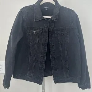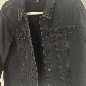 Dark gray denim jacket by Buffalo David Bitton. Features a classic collar and button closure.