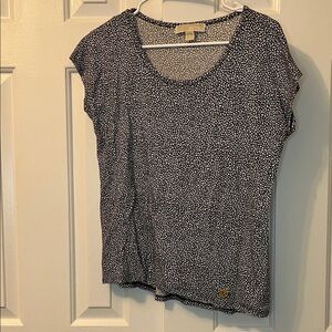 Michael Kors Patterned White Black Career Short Sleeve Shirt Size S