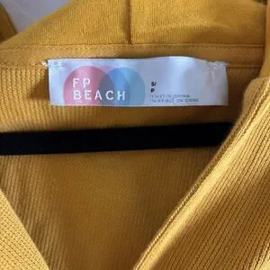 Free People FP Beach Sweater Womens Small Yellow Hooded Button Cardigan Pockets