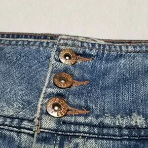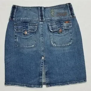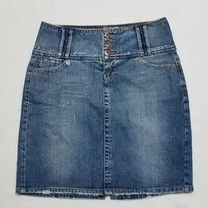 Vintage Y2K Bongo Distressed High Rise Stretchy Denim Mini Skirt Wide Belt Loops.