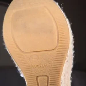 Bettye Muller navy espadrilles with gold buckle. Soft, genuine suede leather upper.