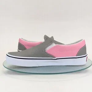 These Vans slip-ons are like your favorite comedy duo—gray for the straight man, pink for the punchline. Classic waffle sole for laughs and comfort.