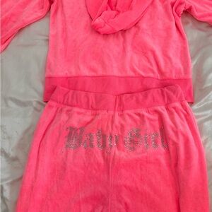 2000’s rhinestone "baby girl" velour 2 piece zip up track suit in a bright hot pink colour. Pictures are a part of the description
