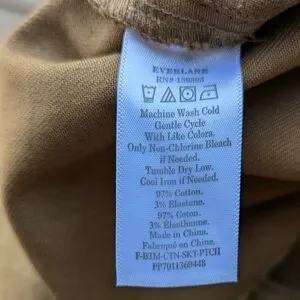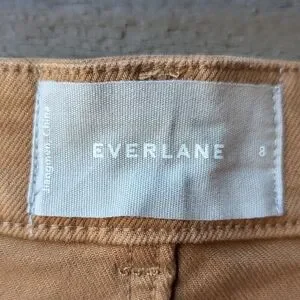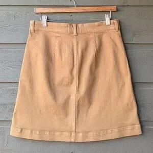 Excellent preowned condition Patch Pocket Structured Cotton A-Line Skirt from Everlane. Camel tan / ochre color way. Zipper fly and button closure. 2 front patch pockets. Sailor pockets. Bare back. Belt loops. 97% cotton 3% elastane. Stretch cotton. Machine washable. Clean. No flaws or signs of wear; this looks and feels brand new!