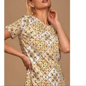 Lulus Dandy Lion Yellow Print Mini Dress S
