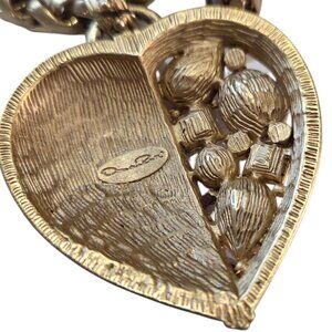 Magnificent Vintage Oscar de la Renta Crystal Heart Necklace on a Chunky 36" Wheat Chain with Toggle Closure