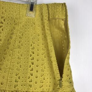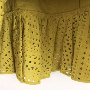 Zara Mini Skirt Eyelet Embroidered Mustard Yellow Ruffle Cotton Women's Size Medium