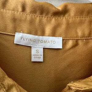Flying Tomato Romantic Moves woven top in gold satin finish shirred waist sz S