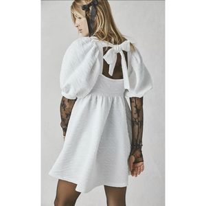 Free People White Babydoll Mini Dress Violet Square Neck Short Puff Sleeves