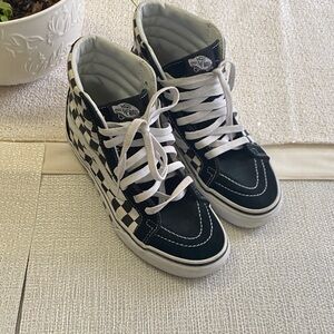 Iconic Vans high-tops with a bold checkered design. Ideal for everyday style.