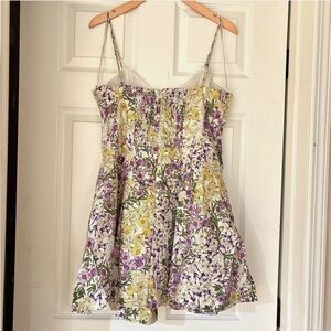 The Anthropologie Maeve Lace-Trim Sweetheart Mini Dress in size medium is a floral patterned dress made of 100% cotton, featuring a sleeveless design with a sweetheart neckline and lace trim accents. The dress is perfect for various occasions such as travel, weddings, parties, casual outings, and formal events. With a zipped closure and adjustable, lined, and lightweight features, this multicolored dress in a short length offers a sophisticated and feminine style with a touch of ruffle accents, making it a versatile addition to any wardrobe.