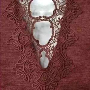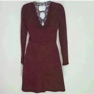 Candie's Junior Lace Back Faux Wrap Dress, Size Small, Burgundy color, Sweater Knit Construction, Lace Back Detailing, Wrap Front, Long Sleeves. Pet & Smoke Free Home