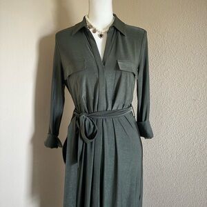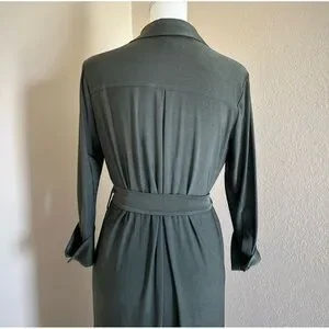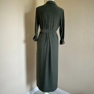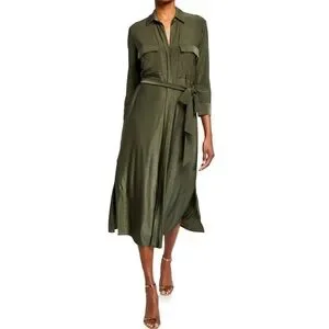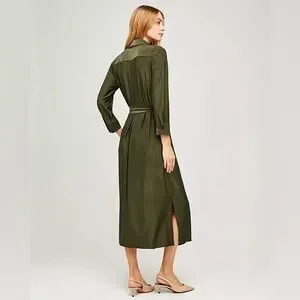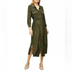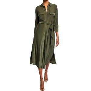 L'agence Rivi Midi Shirt Dress Olive Green XS Utility Business Casual Luxury