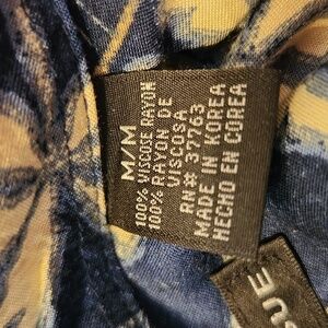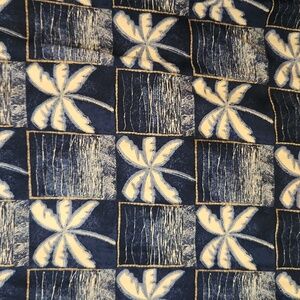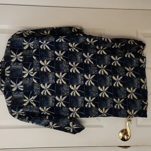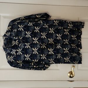 Vintage stylish shirt with palm tree pattern. Features a blue and cream color scheme. Like new!