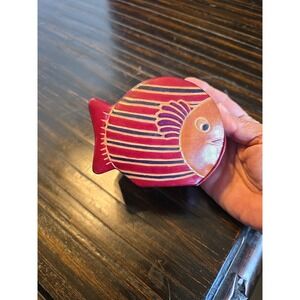 VINTAGE LEATHER EMBOSSED FISH BANK. Condition is Used. Shipped with USPS Ground Advantage.