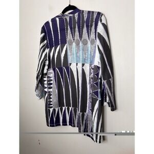 Chico's Easywear Abstract Print Open Cardigan Sweater Chicos Blue Purple Size 2