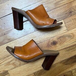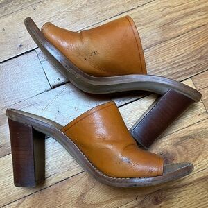 J. Crew Brown Leather Vintage Mule Heels. Size 6. Wear as pictured, great sturdy shoe!