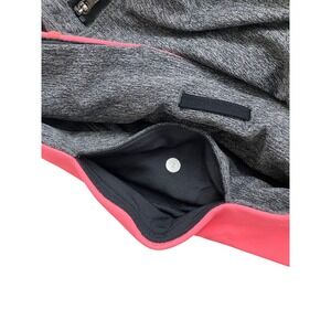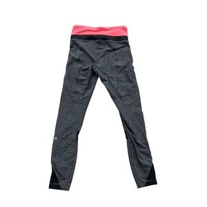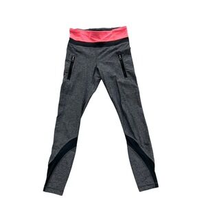 Lululemon Heathered Grey Neon Pink Waistband Mesh Panel Zipper Pocket Leggings