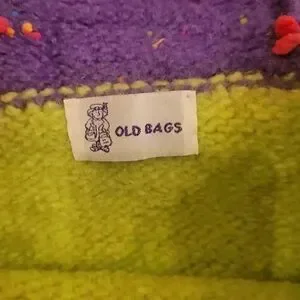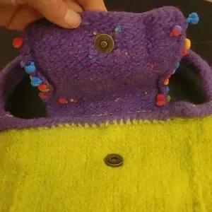 Old Bags Women's Green/Purple Wool Yarn Knit Top Handle Handbag EUC sz M 9" h x 3" d x 7.5" w 7" strap drop