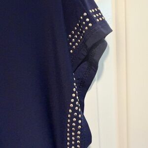 Stylish navy top featuring a unique cutout design. Ideal for versatile wear.