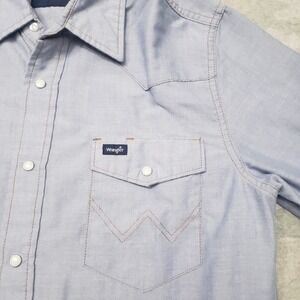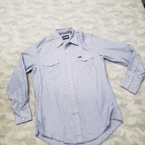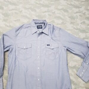 Wrangler Shirt Mens 15.5x34 Blue Pockets Pearl Snap Long Sleeve Western Cowboy