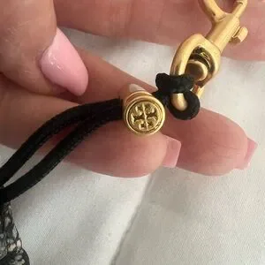 Tory Burch pouch bag with a floral pattern. Features a drawstring closure and iconic logo design. Nice thick material approx 5x7”