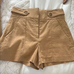 Elegant camel vest and shorts. Double-breasted style. Ideal for fashionable events. the Vest is size 2 and the short is 0