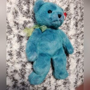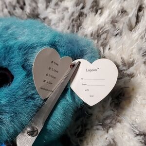 This Ty Classic is absolutely perfect! He is many shades of blue just like a Lagoon. He stands almost 14 inches tall. He also sits well in a chair or on his own.