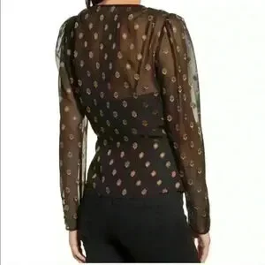 NWOT a sheer black and gold wrap blouse