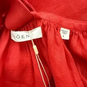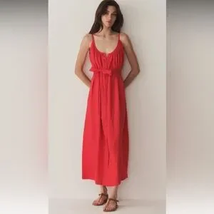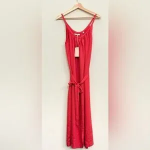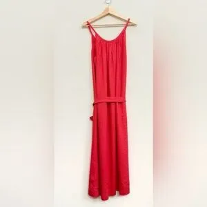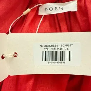 NWT DÔEN Nevita Linen Belted Midi Dress in Scarlett Size L