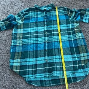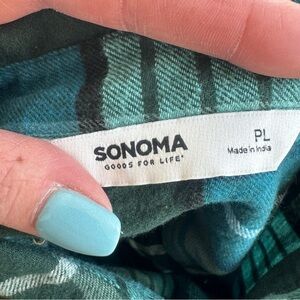 Sonoma Goods for Life Green Plaid Flannel Shirt Button Up 100% Cotton PL Petite