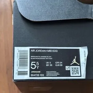 Jordan Air 1 Mid (GS) in White, Orange, and Black
