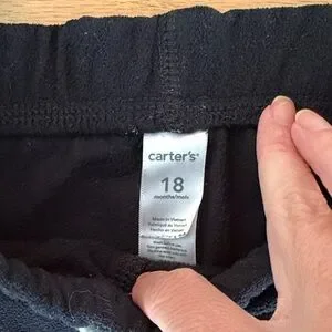 Carters black fleece joggers w faux drawstring, size 18 mo