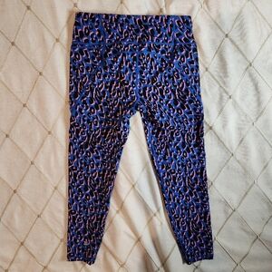 Sweaty Betty Power Workout Leggings Blue Pink Leopard Print | High Waisted 10