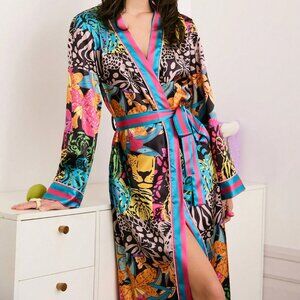 Multicolor Casual Women's Floral & Botanical Silk Robe