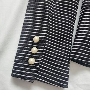 NWOT Ann Taylor Size 2 Black White Striped Blazer with Pearl Buttons