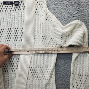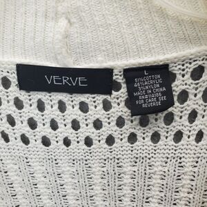 Verve Cardigan Sweater Womens Large Tan Crochet Ribbed Long Sleeve Open Front.