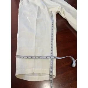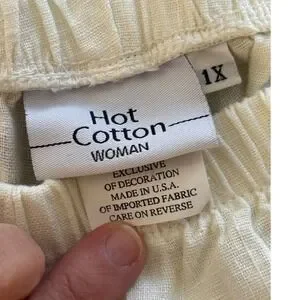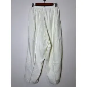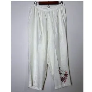 Hot Cotton Woman 1X Linen Pants Cream Floral Embroidered Pull On Cropped Elastic