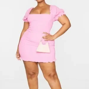 This chic pink mini dress from PrettyLittleThing is perfect for a night out or cocktail event. It features a flattering square neckline and charming puff cap sleeves, offering a sleek bodycon fit. The dress is crafted from a soft, stretchy fabric that ensures both comfort and style.