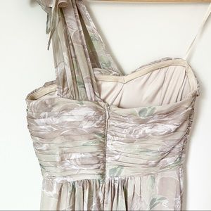 Romantic graceful Adrianna Papell One Shoulder Floral Print Ruched Chiffon Gown Champagne 4 - elegant enchanting graceful feminine bridesmaid bachelorette shower maid of honor bridal wedding guest prom homecoming special occasion boho pageant goddess garden maxi long dress neutral wedding guest party gala event red carpet birthday sweet 16 bat mitzvah quinceañera formal black tie gown destination spring summer