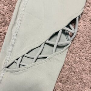 Stylish mint green leggings. Features lattice detail at the ankles. Perfect for yoga or casual wear. Size medium