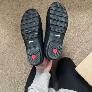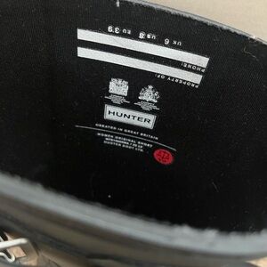 Durable and sleek rain boots by Hunter. Ideal for wet conditions. Comes with boot socks! Medium sized