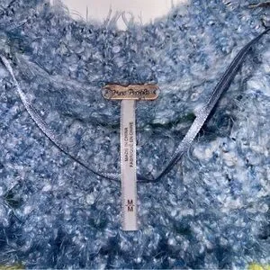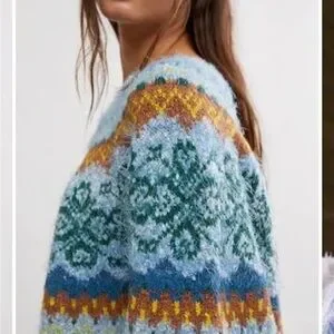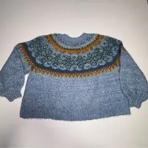 Free People Festive Frost Pullover Sweater - Ice Blue Combo - Sz Medium