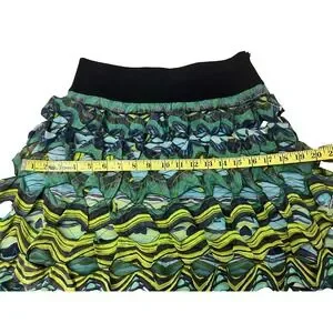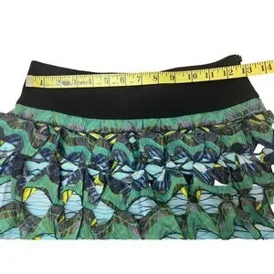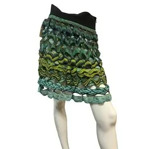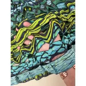 Diane von Furstenberg Gunita Mini Skirt Green Blue Open Work Wave Print SZ 4