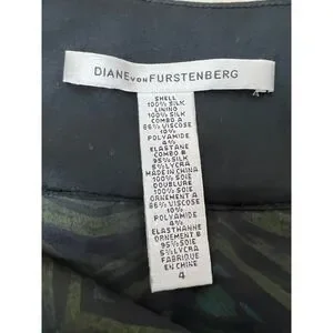 The Diane von Furstenberg Gunita Mini Skirt in green and blue features an open work wave print, making it a stylish choice for various occasions such as travel, parties, or casual wear. Made from silk with a black contrast waistband, this skirt has a side zip closure and a mid-rise. Its short length and mini style add a touch of flirty rock n roll to your wardrobe, perfect for all seasons. Designed by the renowned brand Diane von Furstenberg, this skirt is sure to make a statement with its art deco-inspired design and vibrant colors.