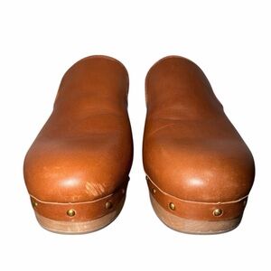 J.Crew Cognac Leather Platform Wooden Heel Embellished with Studs Clogs