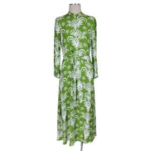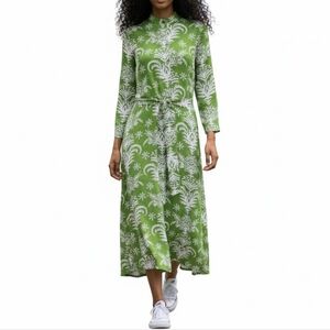 Zara Lilou Midi Dress Size S Green White Tropical Floral Belted Flowy Viscose