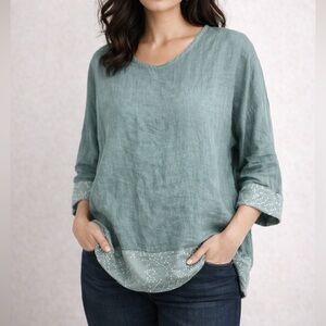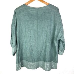 Bellambra Sequin Trim Light Teal Linen Dolman Sleeve Popover Top. Made in Italy. Brand new with tags.