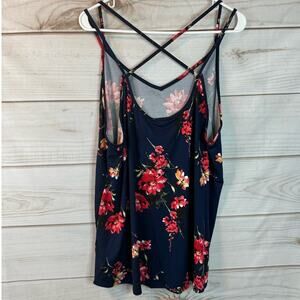 Papermoon Navy Blue Floral Print Basima Back Details Knit Top Size 2X