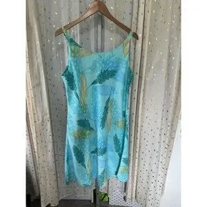 Iolani Hawaiian Tropical Ginger Flowers Batik Midi Slip Dress L
